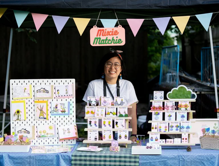 I started Mixie Matchie in 2024 to bring art into everyday life: things you can wear, use, and live with. The brand reflects my love for mixing and matching (think mismatched socks energy) and celebrating self-expression in small, personal ways.